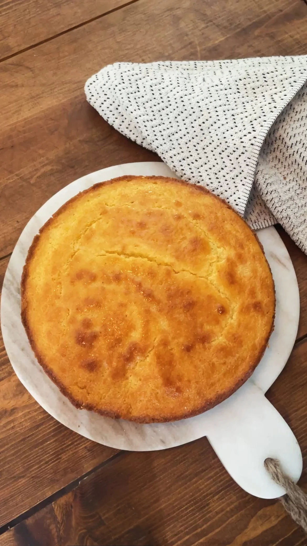 If your skillet is well buttered, then the cornbread should fall out in one perfect piece, once flipped.