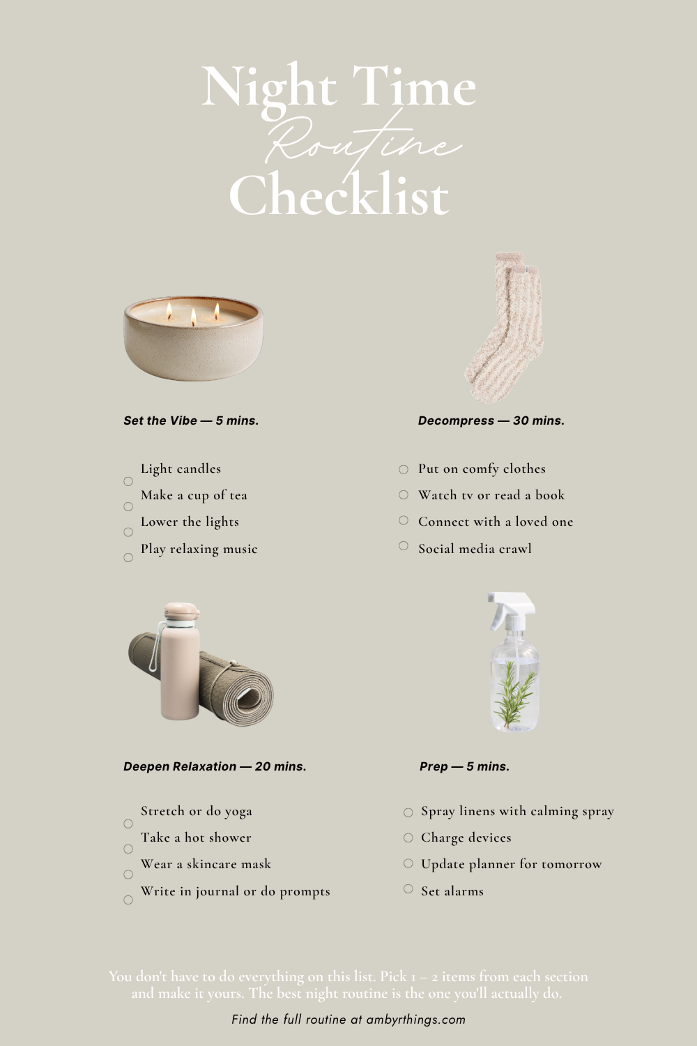 If you’d like the expanded version of this routine, you can find the Night Time Routine Full Guide here →